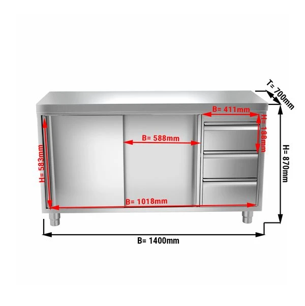 - Korpus, Schubladen und Türen aus hochwertigem Edelstahl AISI 304