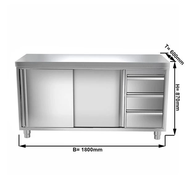 - Korpus, Schubladen und Türen aus hochwertigem Edelstahl AISI 304