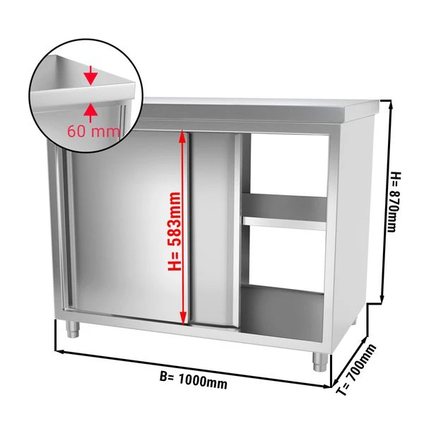 - Arbeitsplatte aus doppelwandigem Edelstahl