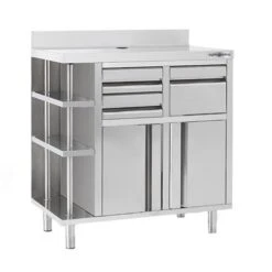 Kaffeebar-Arbeitsschrank – 800x600mm – 2 Schubladen, Ausklopfer & Aufkantung