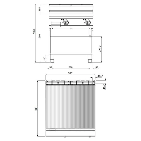 - Außenmaß B x T x H: 800 mm x 900 mm x 1.065 mm