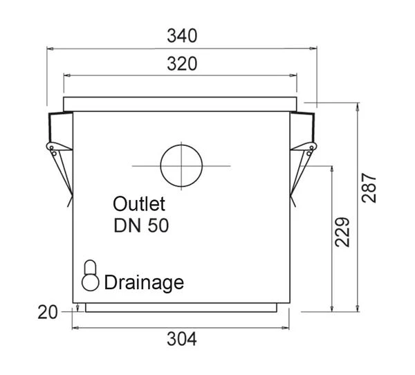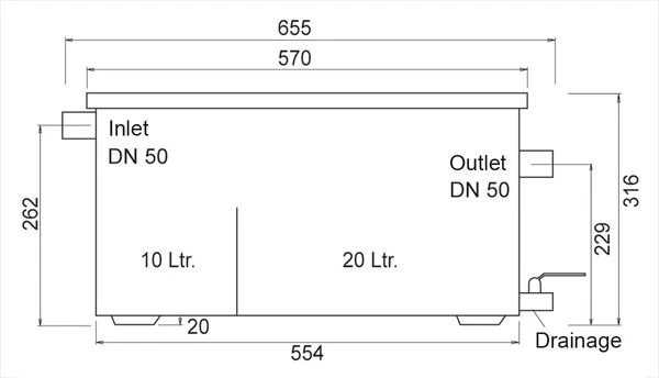 - Kapazität des Fettabscheideraumes: 20 Liter