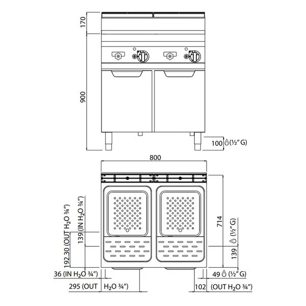 - Außenmaß B x T x H: 800 mm x 714 mm x 1.070 mm