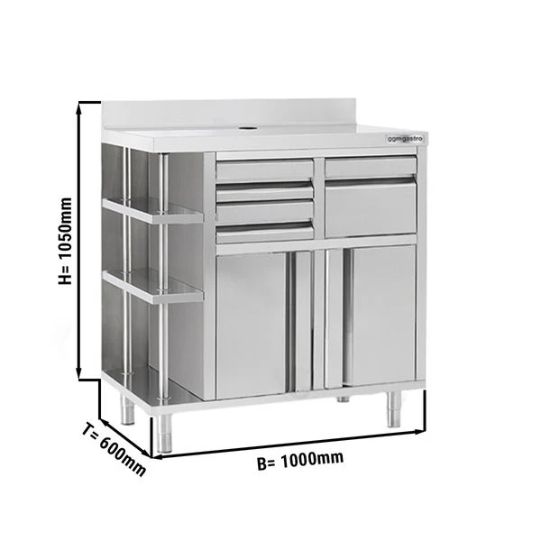 - Korpus, Tür und Schubladen aus hochwertigem Edelstahl AISI 304