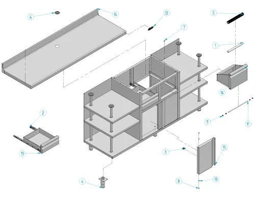 - Korpus, Tür und Schubladen aus hochwertigem Edelstahl AISI 304