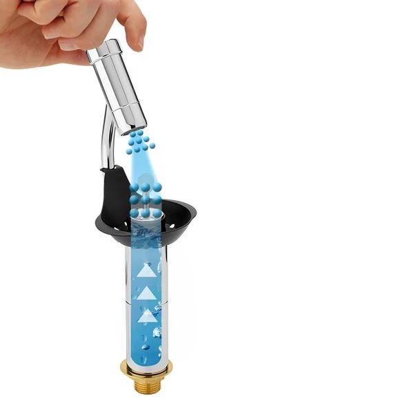 - Integriertem Wasserstrahl-Regler am oberen Sprühkopf