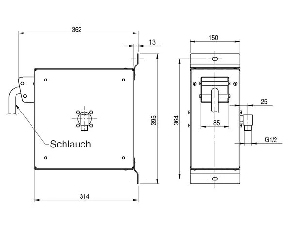 - Außenmaß B x T x H: 362 mm x 150 mm x 364 mm