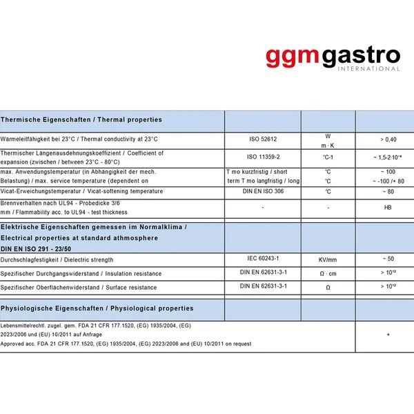 - Material entspricht den europäischen Nahrungsmittel-Normen