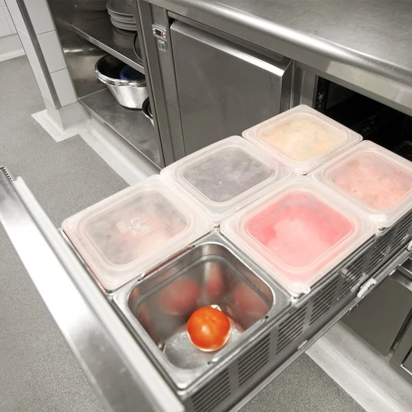 - Passend in den Schubladen: 1/2, 1/4, 2/8, 1/3, 1/6, 1/9 GN Behälter