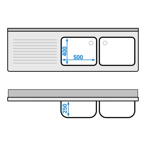 - Überstand der Abtropffläche für Spülmaschine: 600 mm