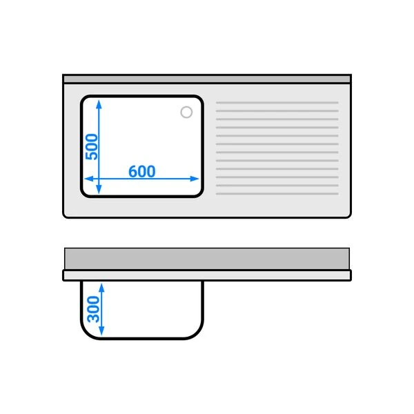 - Arbeitsfläche/Abtropffläche aus geprägtem Edelstahl