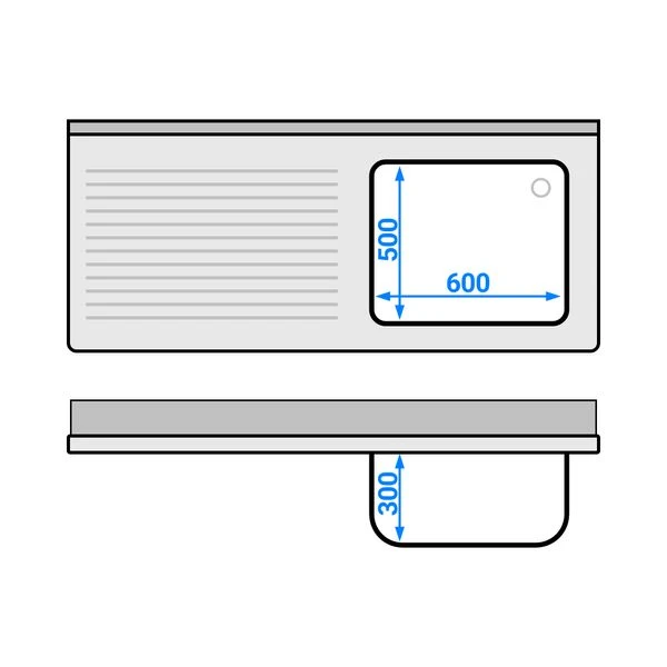 - Arbeitsfläche/Abtropffläche aus geprägtem Edelstahl