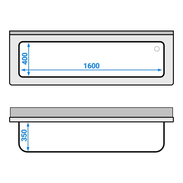 - Beckenmaß B x T x H: 1.600 mm x 400 mm x 350 mm