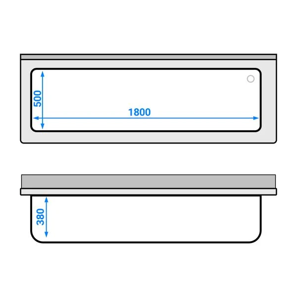 - Beckenmaß B x T x H: 1.800 mm x 500 mm x 380 mm